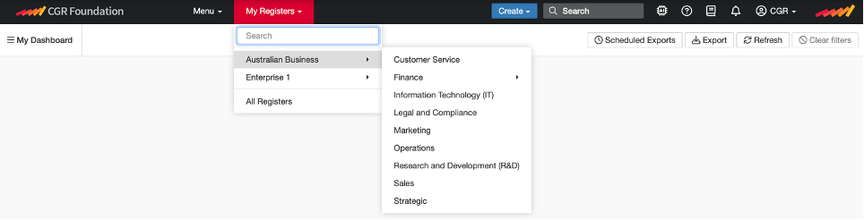 • Your organisation has the register created, but you do not have access to it. Please contact your CGR champion.