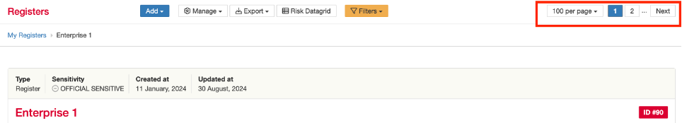 4.    Pagination – You can adjust and change the pagination on the top of the register summary page to the number of records that should be displayed in each page.