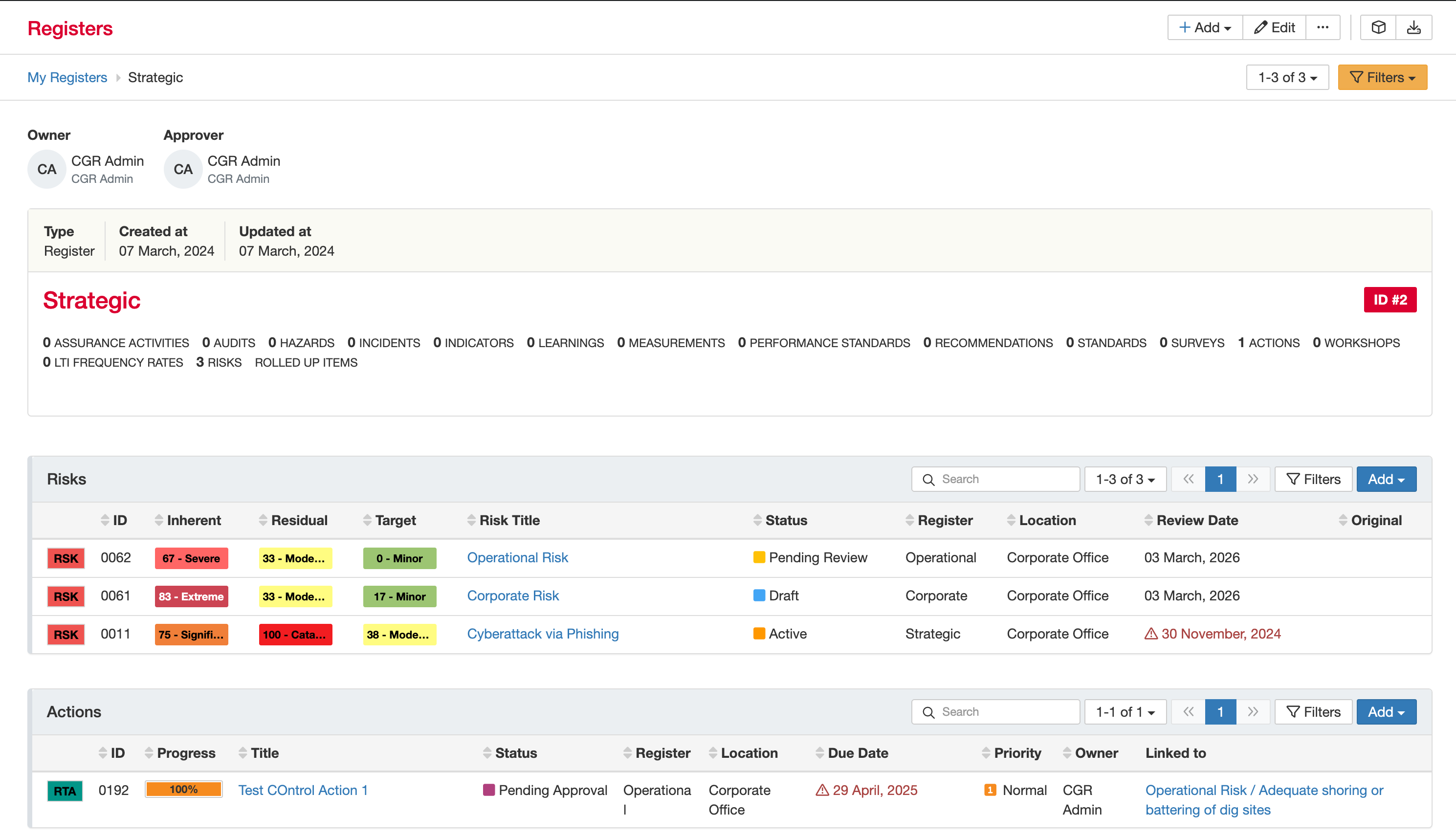 Registers are the core of the CGR platform against which modules data can be recorded. Access for module’s data for individual role or user within CGR can be managed per Register and per module.