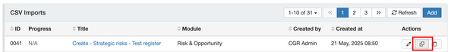 - Click on the ‘Add' button and give the import a clear title, e.g. Create - Strategic risks - Test register.