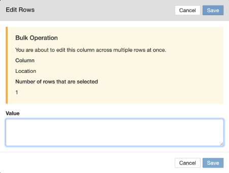 - To fix select the relevant rows checkbox and then click the pencil icon next to the column heading. This will allow you to mass update the value of the selected rows.