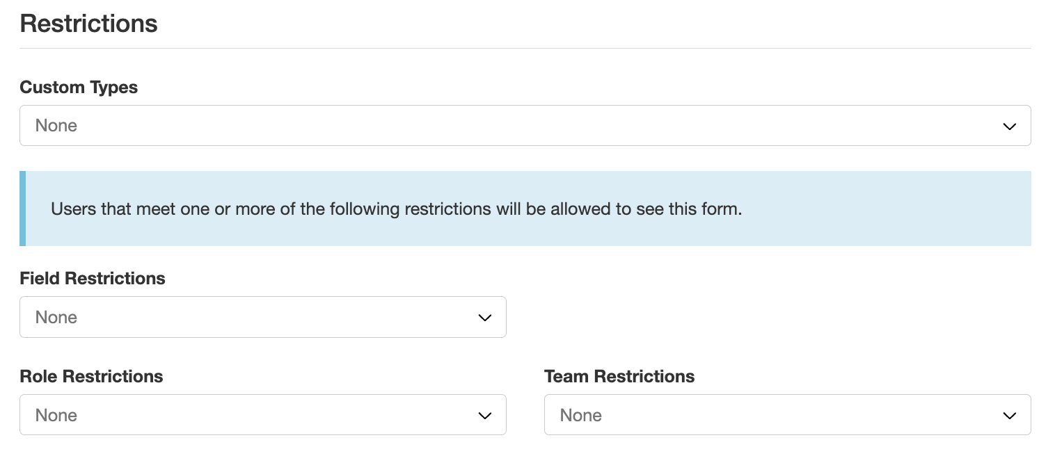 Note: If the Field, Role or Team Restriction field remains empty all users with edit access can use this form.