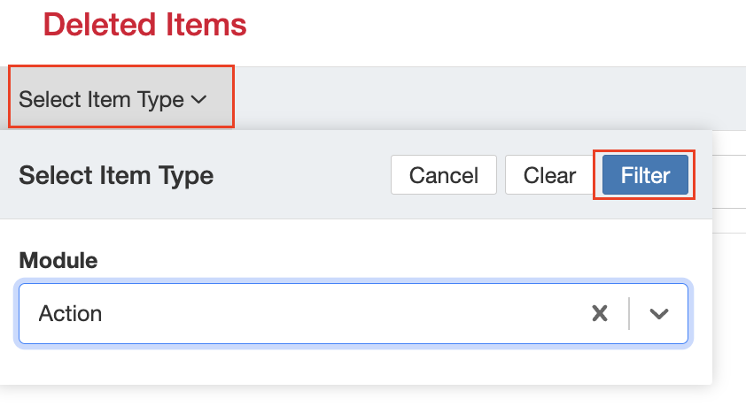 - Use Select Item Type field to choose the relevant module (e.g. Incident), then click Filter.