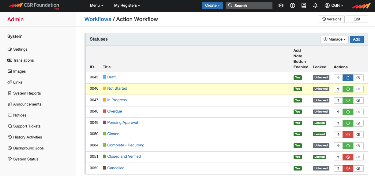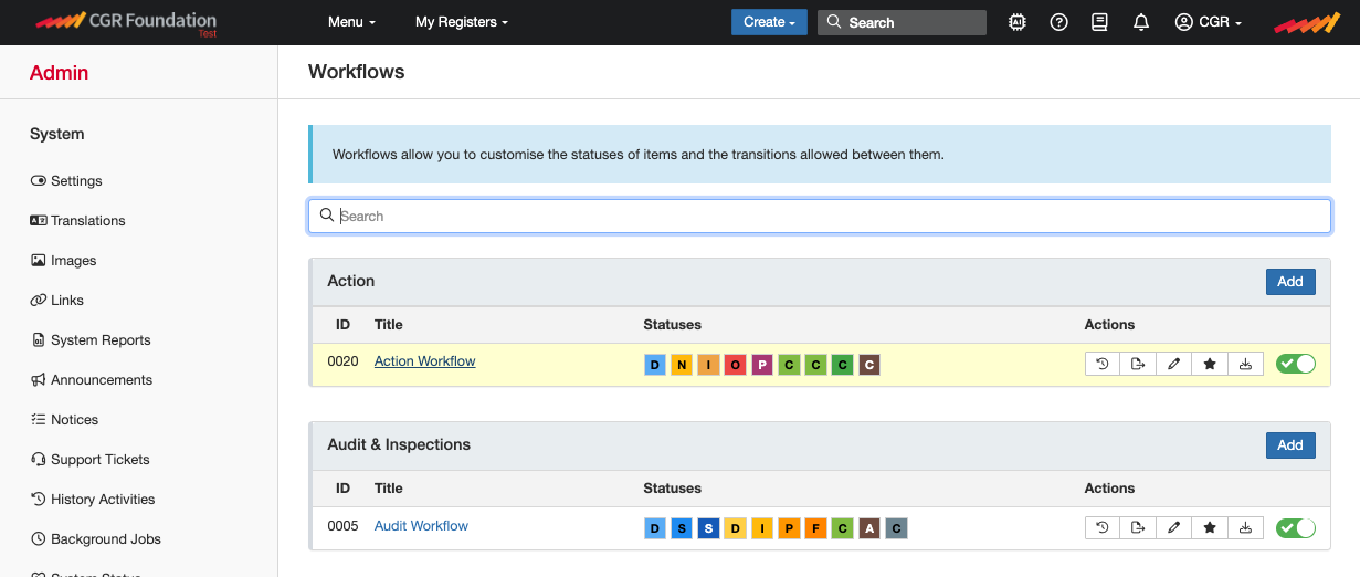 The CGR Platform allows system administrators to configure workflows. These workflows can have statuses that are considered inactive/ closed by the CGR Platform.