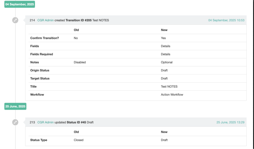 Versions on a workflow help to retrace what changes have been made and by whom.