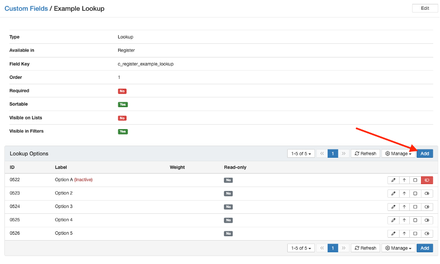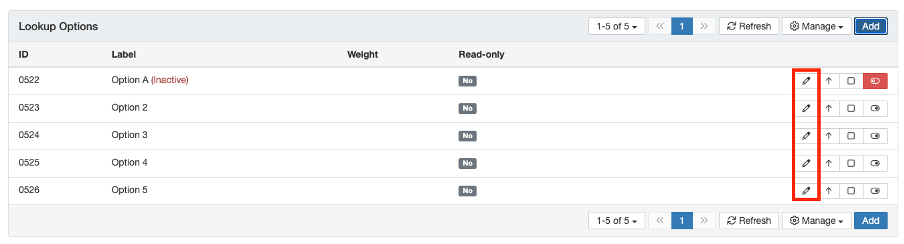 - When you edit an existing option, for example, the title. All records will display the updated title, this is useful since you make the changes across the board without needing to mass edit individual records.