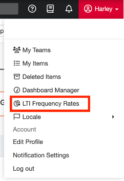 If you don’t see the LTI Frequency Rates button under your name in the top right corner, it means you do not have the necessary access to add or manage LTI Frequency.