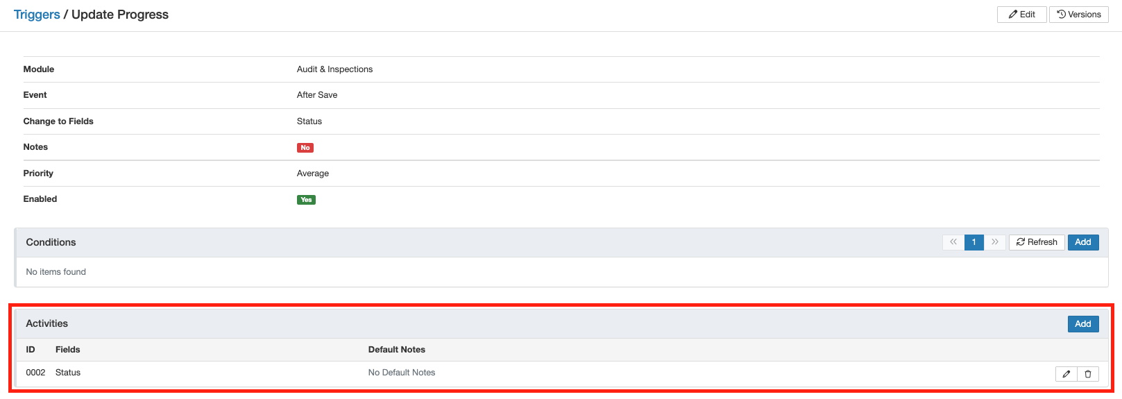 Locate the sub-panel Activities and click the pencil icon to edit.