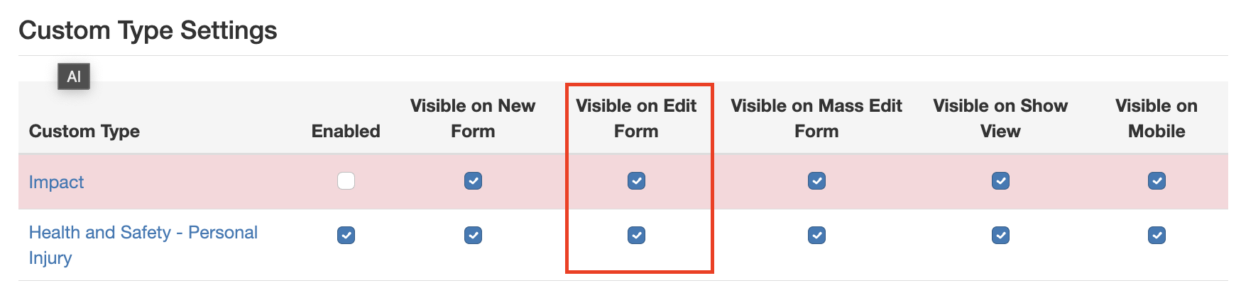 - Ensure the checkbox Visible on Edit Form is selected and save.