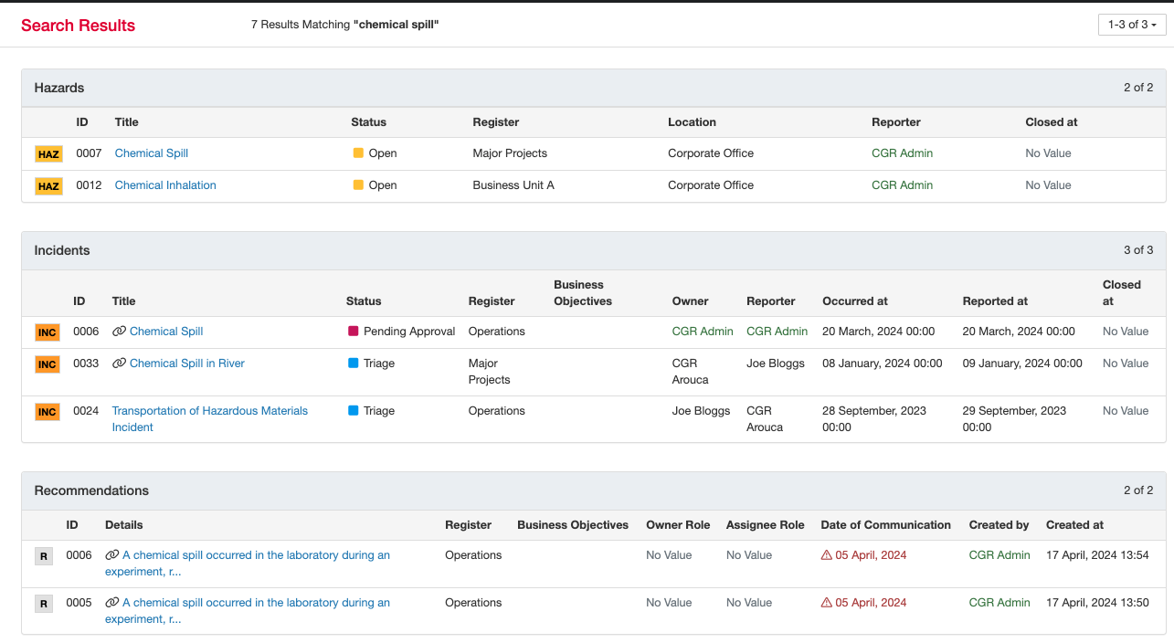 The search bar helps you quickly find items in the system by typing an ID, title, or keyword. It searches across records and shows the most relevant results.