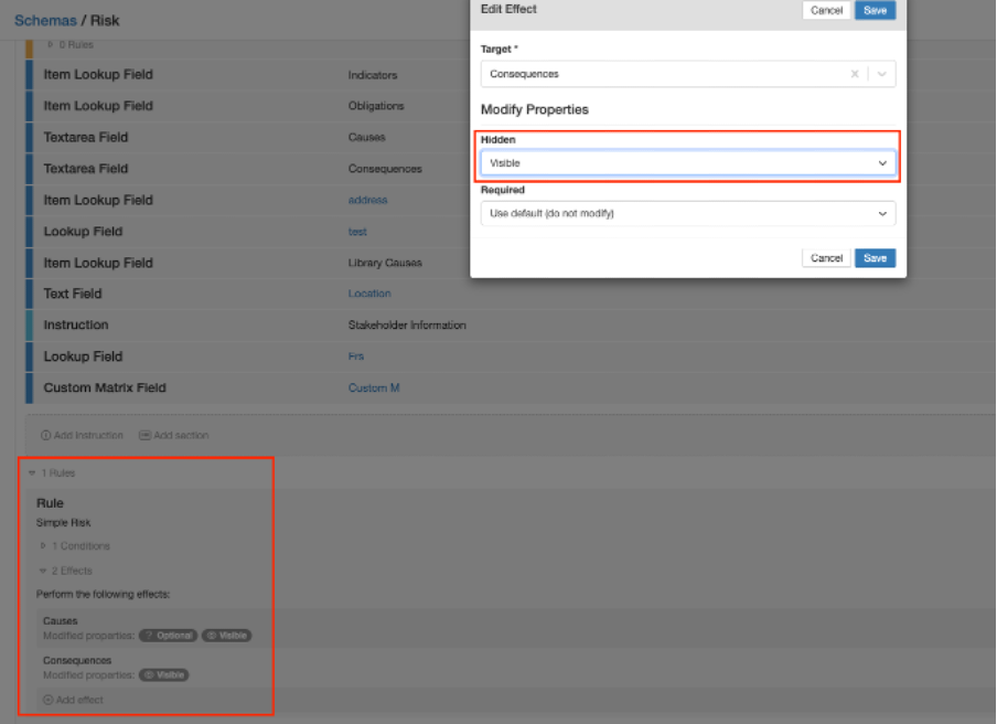 When creating or updating a schema, some fields may not hide or display immediately. If this happens, try the following steps: