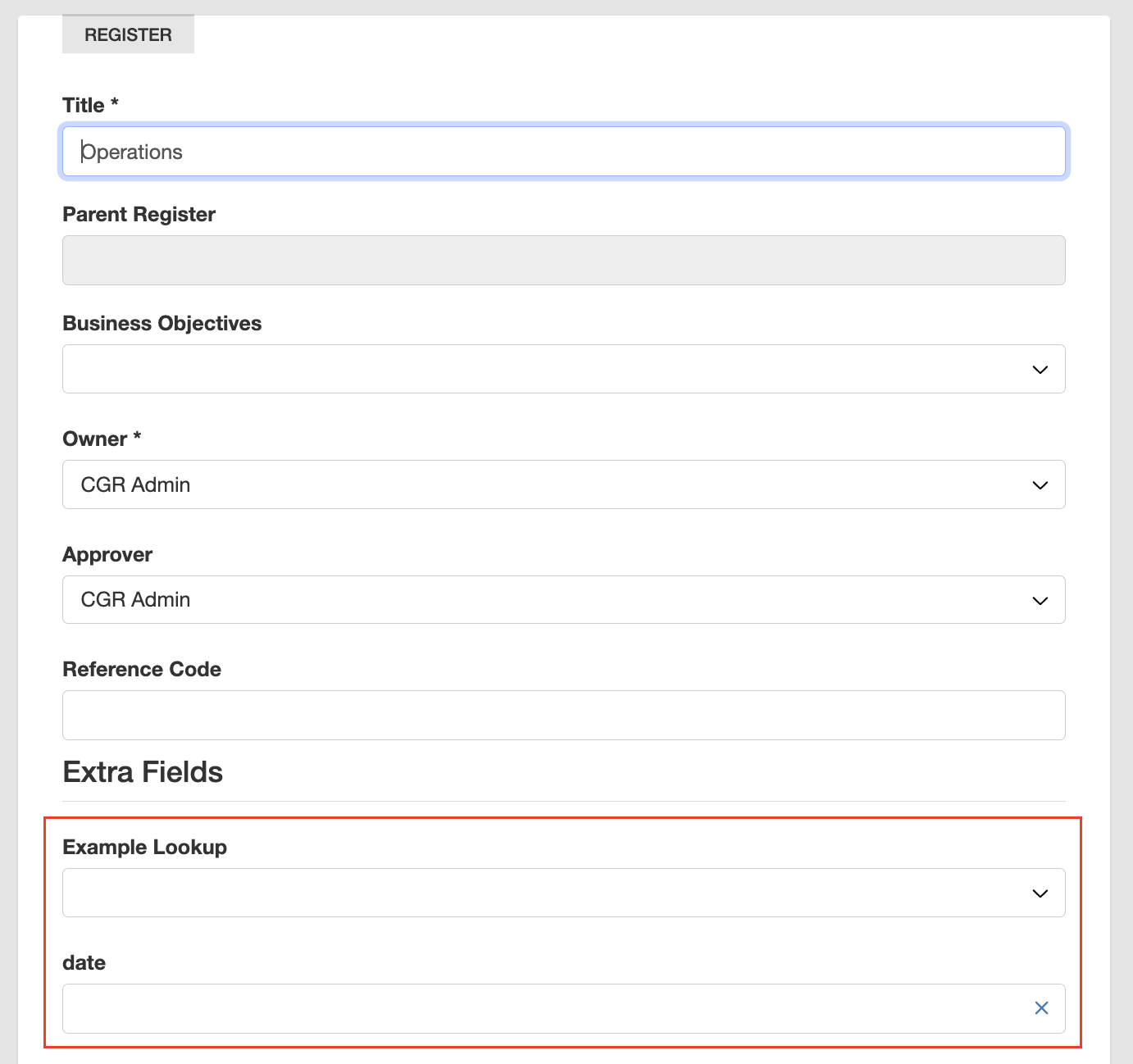 - Check whether the field has been added to the required form by navigating to a register and either creating a new record or editing an existing one to confirm the new fields are visible.
