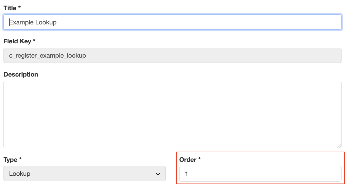 - To adjust the order of fields, update the Order value with the number that reflects the desired position of the custom fields.