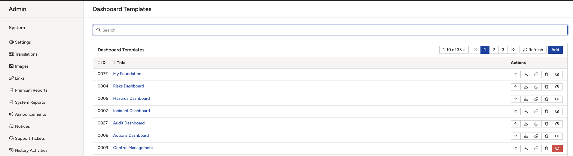 • System Admins can manage all dashboard templates from Admin → Dashboard Templates