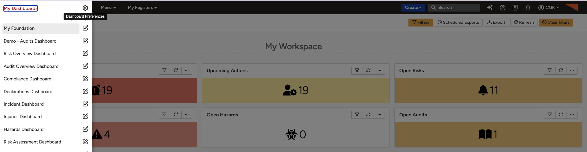 Dashboard Templates determine which dashboards are available to users in Clew (previously CGR Foundation).